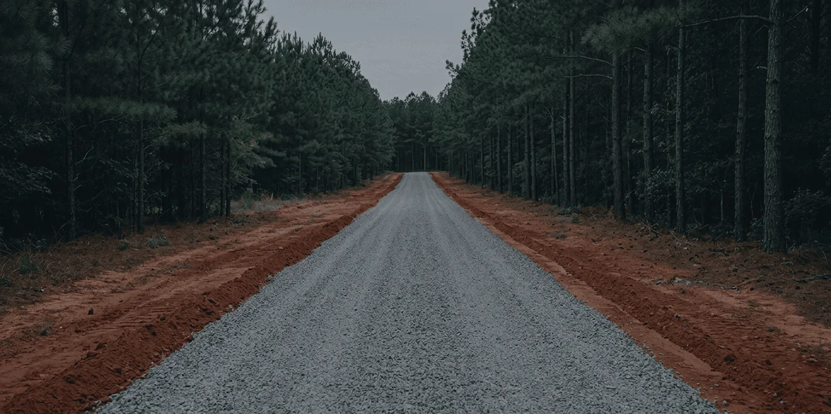 New driveway construction from scratch for rural and residential properties in Bulloch County. We handle base prep, compacted crusher run base layer, surface gravel, and drainage grading — built to handle southeast Georgia's heavy rain seasons.